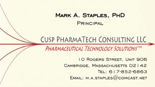•CUSP was founded by Mark A. Staples, Ph.D. in 2007 and is based in Cambridge, MA. Dr. Staples has worked in drug development for over 25 years. His specialties include: