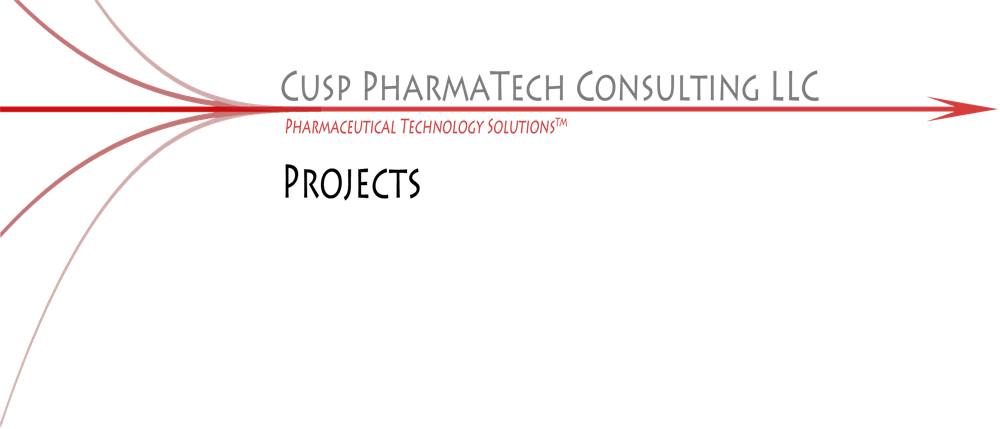 The following examples [specific names and data disguised] are representative Cusp PharmaTech Consulting LLC (“CUSP”) projects.